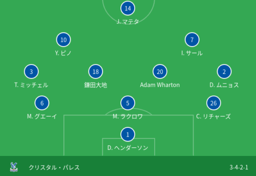 対するクリスタル・パレスは今シーズンここまで上手く機能している3−4−2−1の布陣。
